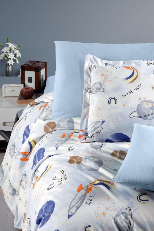 Комплекта включва : Завивка 150/220 см -външна част ранфорс,памук 100%.вътрешна част -термо вата ,200гр,която създава усещане за много топлина,долен чаршаф 140/240 см,калъфка 50/70 см