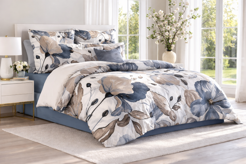 ДВОЕН СПАЛЕН КОМПЛЕКТ Плик 200/220 см – 1 бр, Долен чаршаф с ластик 180/200/20 см– 1 бр Калъфка 50/70 см – 2 бр