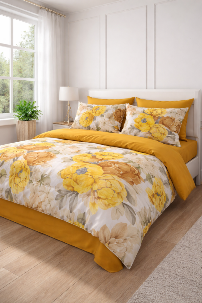 Код:Спален комплект „Горчица и цветя“ – стил и уют за всяка спалня